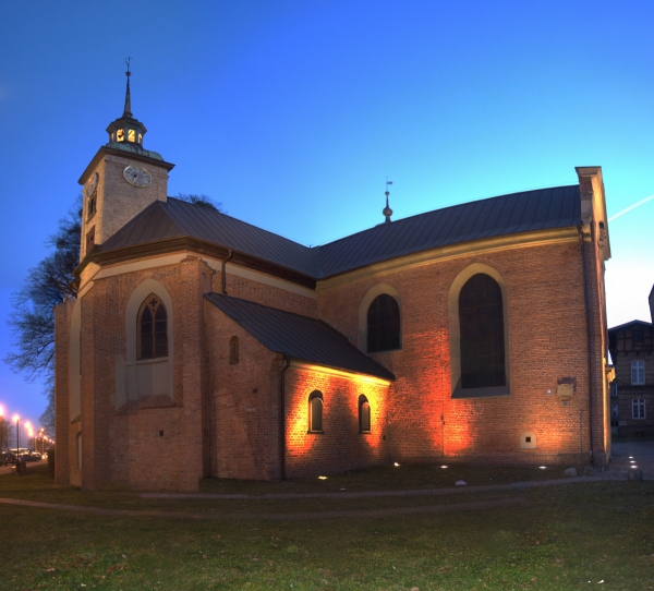 Panorama kościoła z zewnątrz.